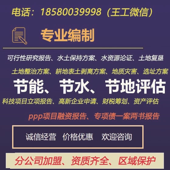 水土保持方案编制需要哪些具体资料?1、工程工期;2、项目工程规划许可证;3、项目土地证;4、建设用地规划许可证;5、项目地勘报告;6、项目总平面布置图;7、绿化···...
